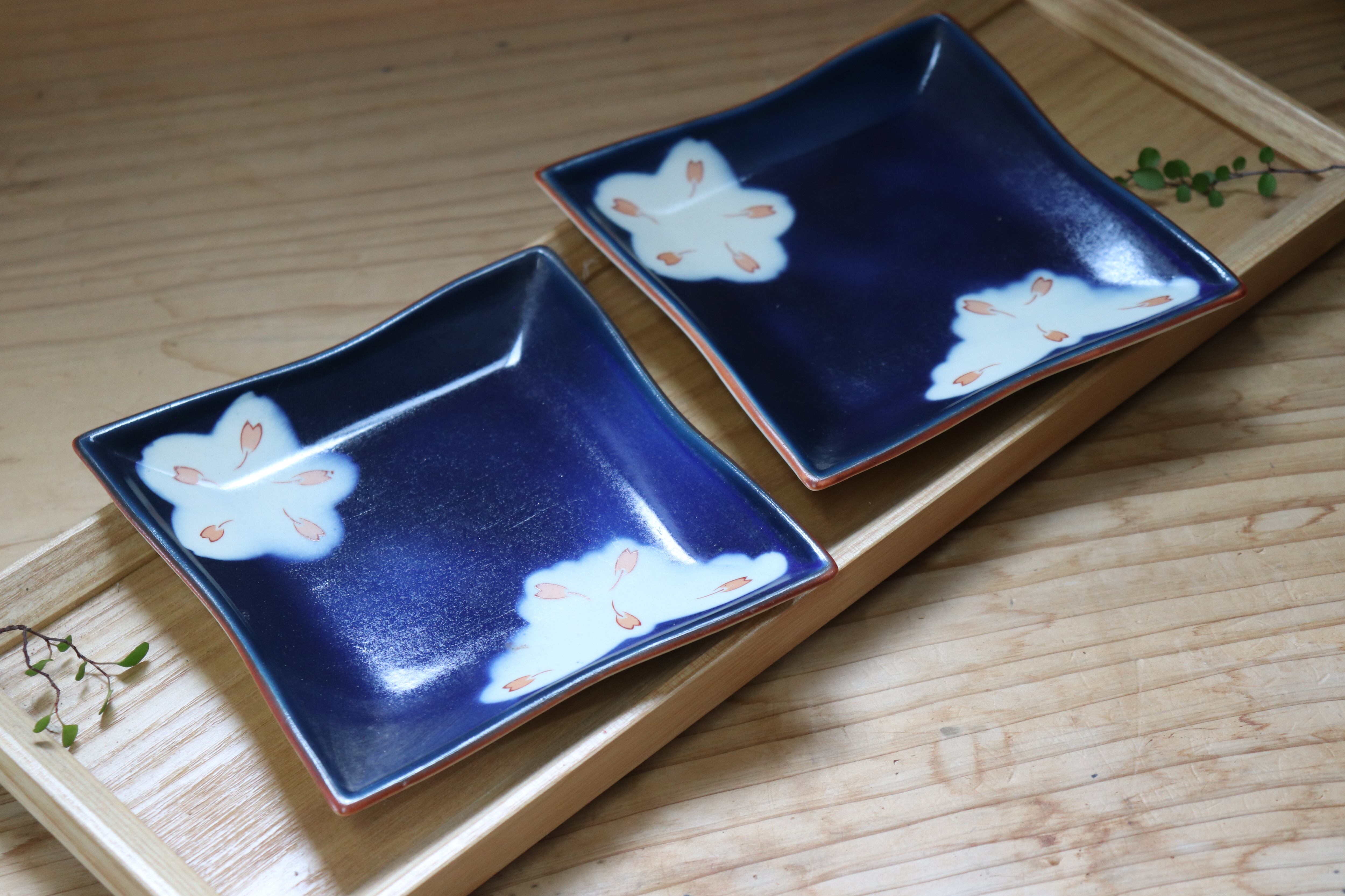 美しいサクラが描かれた角皿。どんな料理も引き立てます。食卓を華やかに彩る一枚です。